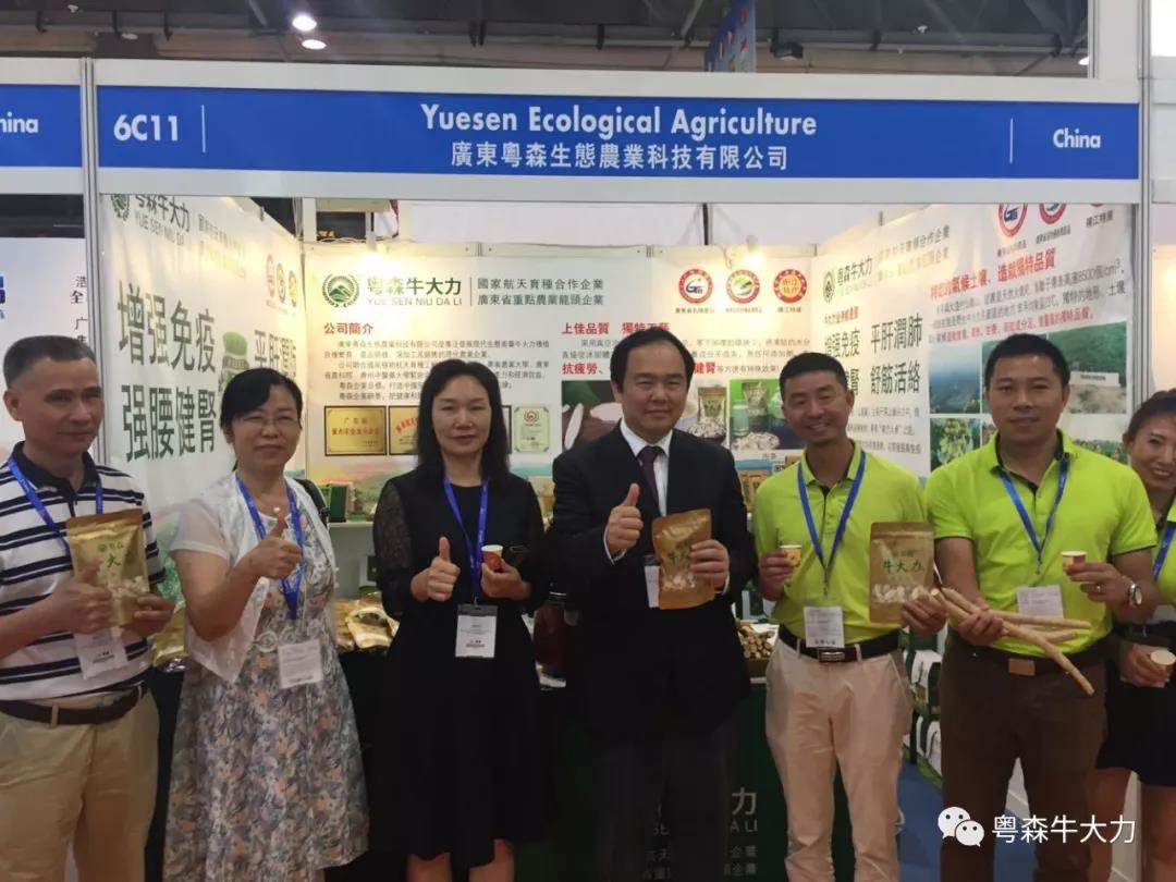 廣東省農(nóng)業(yè)農(nóng)村廳陳東副廳長(左四)為粵森“點贊”,向國際客商推介粵森牛大力,讓粵森牛大力邁向國際市場